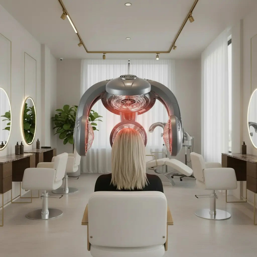 El Termoestimulador digital Modelo Dry Advanced con pie, destinado a tratamientos peluquería que le facilita Grupo Belleza, es un extraordinario ejemplo del concepto que supone el utilizar materiales de calidad para la elaboración de productos de peluquería para un uso específico y profesional, dando lugar a productos únicos y adaptados a cada uso particular. Este novedoso aparato cuenta con la última tendencia en aparatología avanzada para peluquerías y surge como respuesta a la creciente necesidad de la falta de tiempo y estilo de vida moderno, en una búsqueda por ofrecer y primar una mejor calidad del servicio, incluso más allá de la rentabilidad de propio negocio.